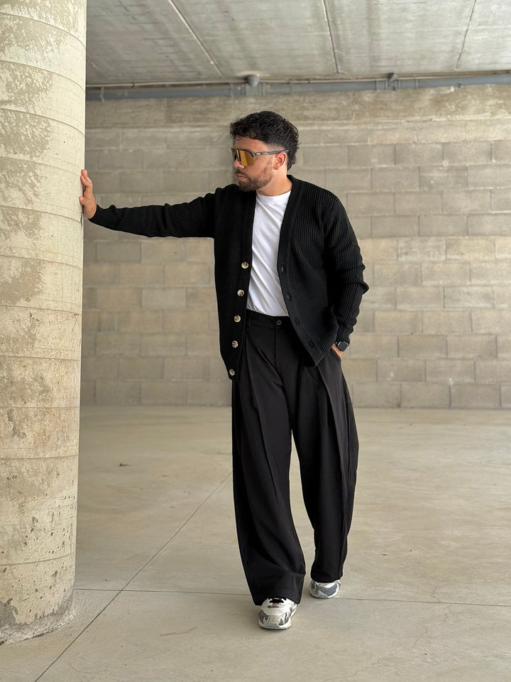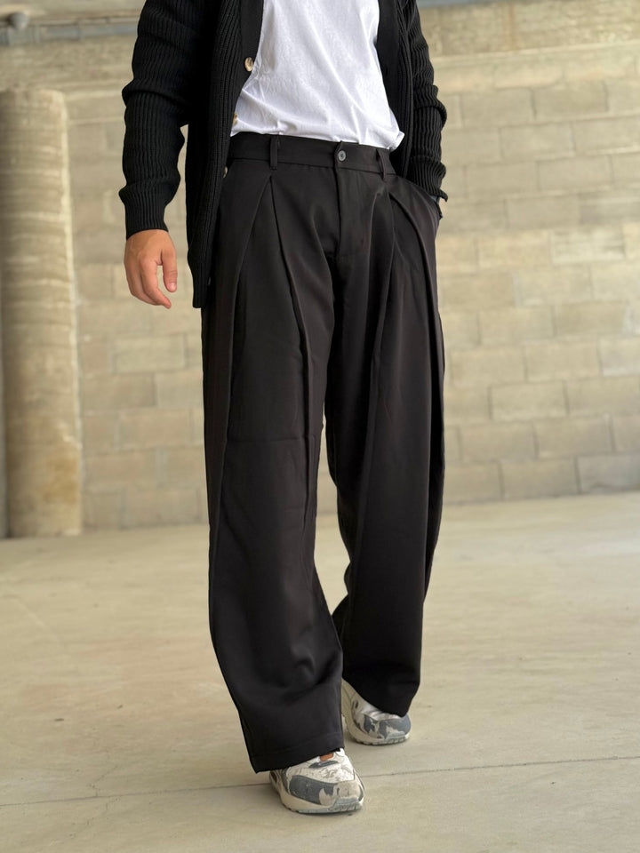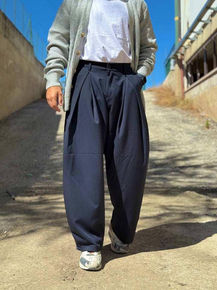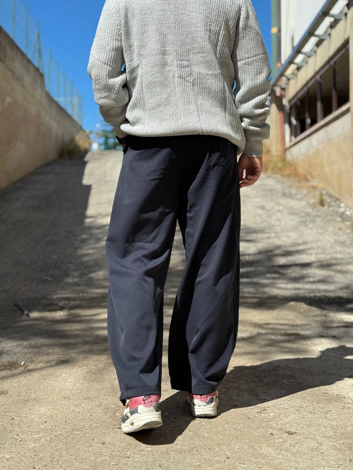nuovo pantalone moda in stile japan doppia pence che dà una vestibilità ampia e morbida, elastico sul retro per una vestibiltà perfetta in vita il modello è 170x70kg e indossa una tg M